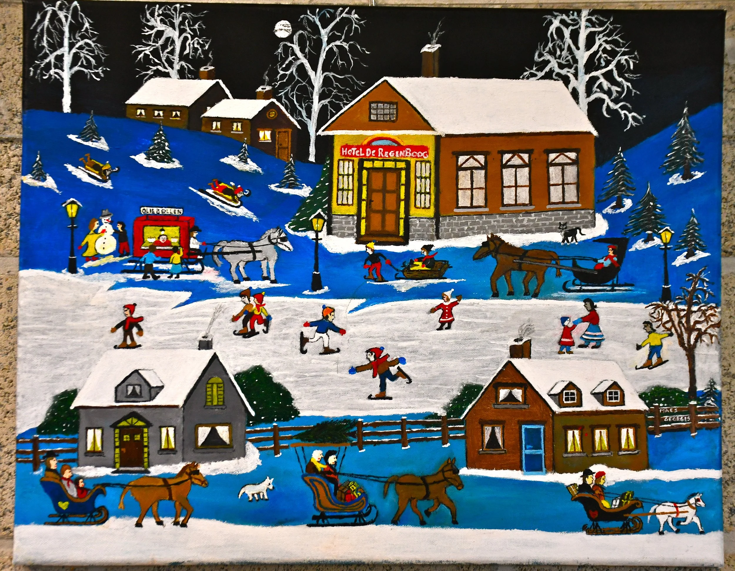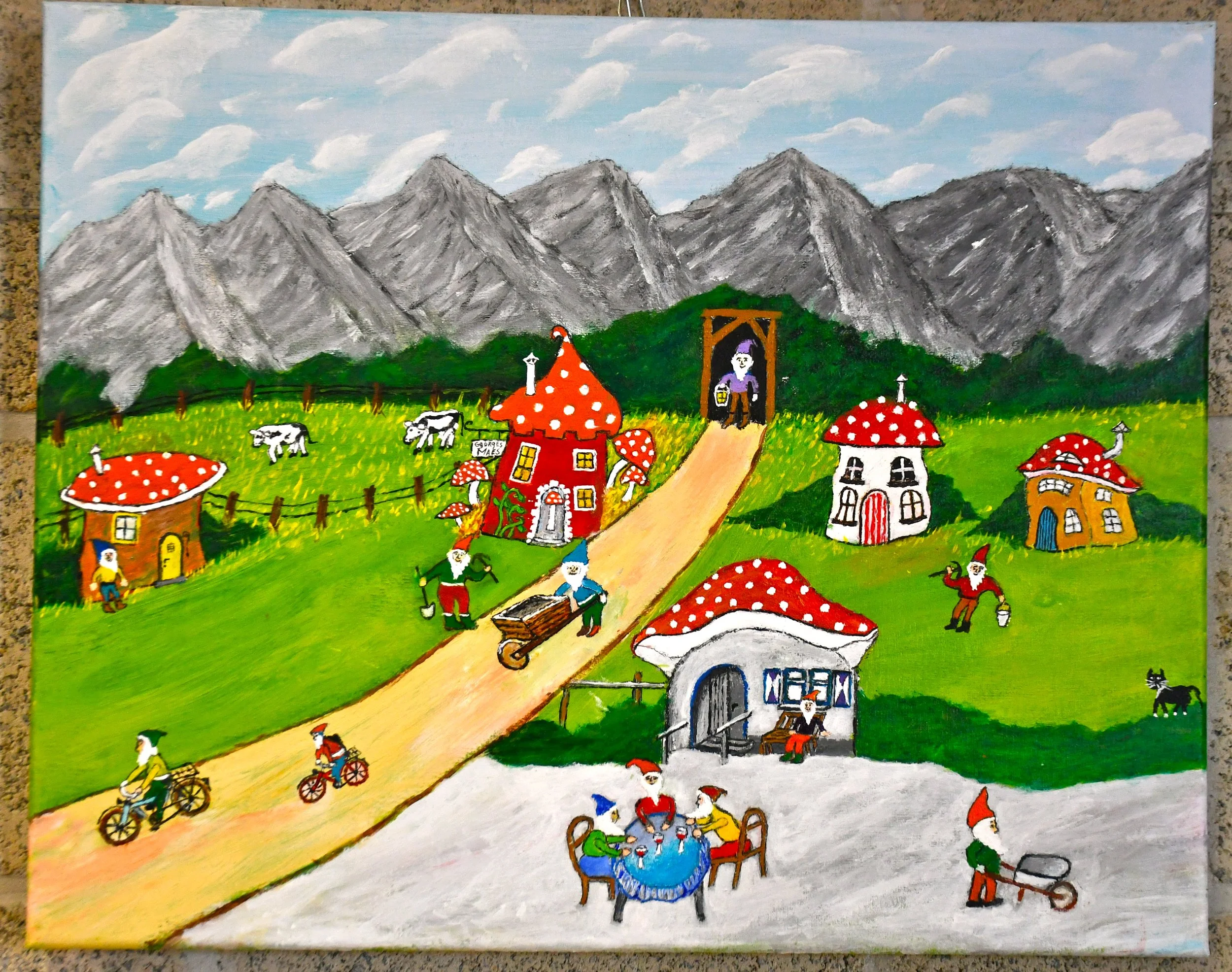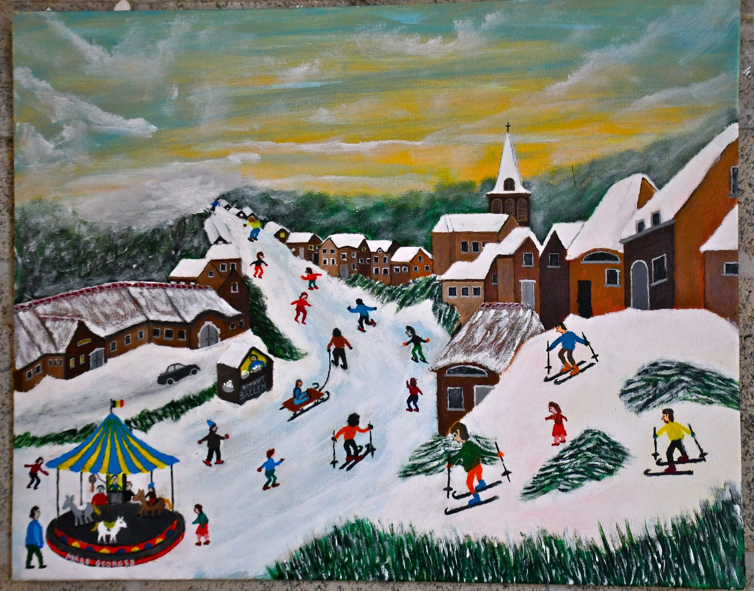 En lukte iets niet , dan begon hij opnieuw. Alles was maakbaar. Zijn eerste schilderijtje tekende hij na van een lotje van de loterij. Zijn eerste paard was niet direct een anatomisch schoon veulentje maar zoals Picasso zou zeggen : Ik schilder niet wat ik zie, ik schilder wat ik denk … En soms dacht papa dus dat het paard groen was en de poten oranje en moest oma bos de vrijheid van kleur wat corrigeren… Zijn werk groeide en hij bloeide helemaal open toen hij Artificium leerde kennen. Theo en Marina namen hem mee op sleeptouw en moesten hemel en aarde bewegen om hem met zijn kunst naar buiten te durven komen. Hij keek met veel bewondering naar het werk van de anderen en nam bezoekers mee in zijn kielzog, overtuigde hen van de schoonheid en de kunde van die kunstenaars daar.