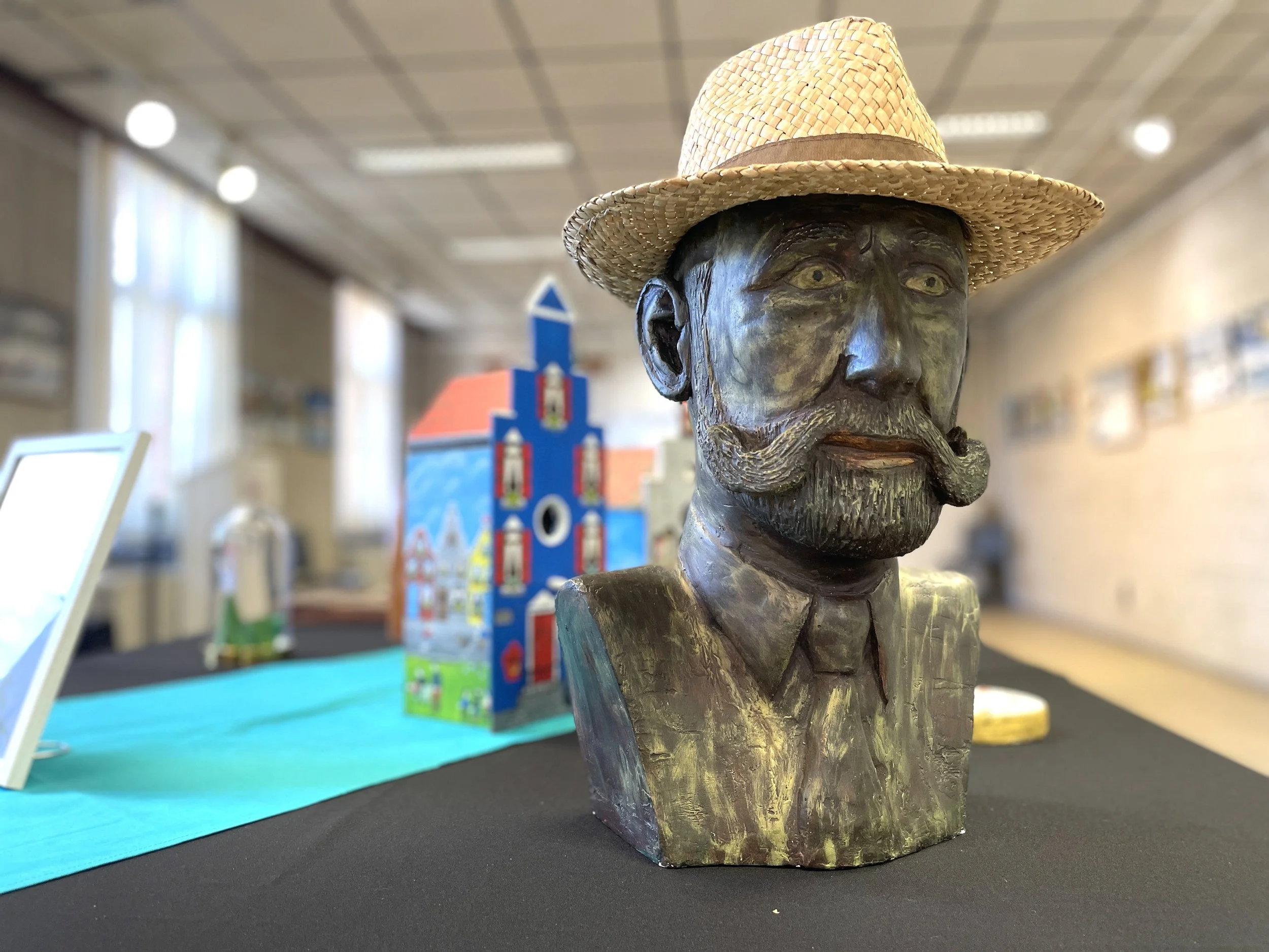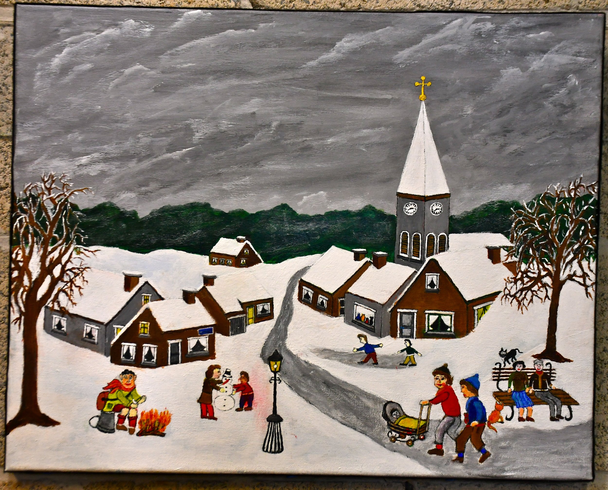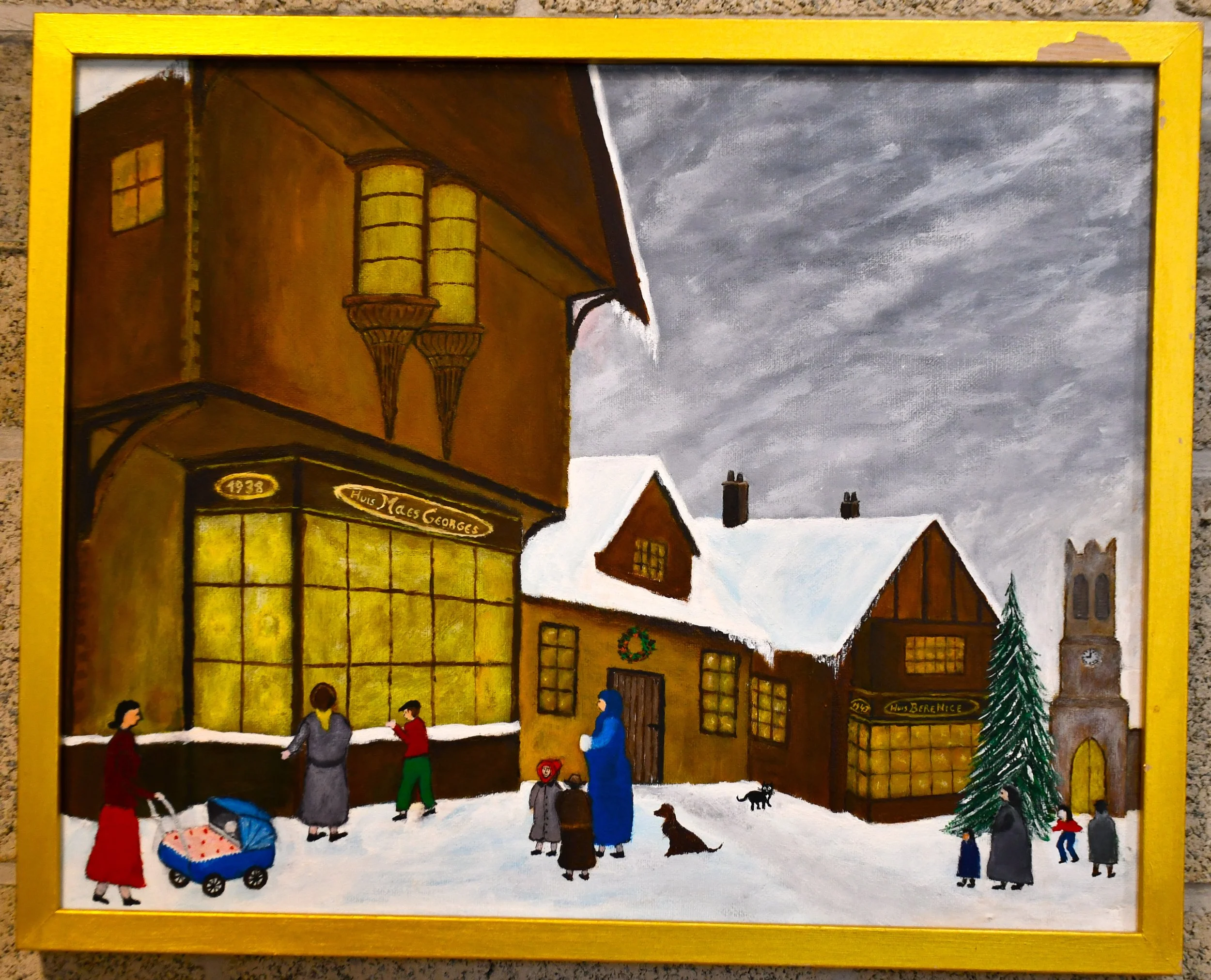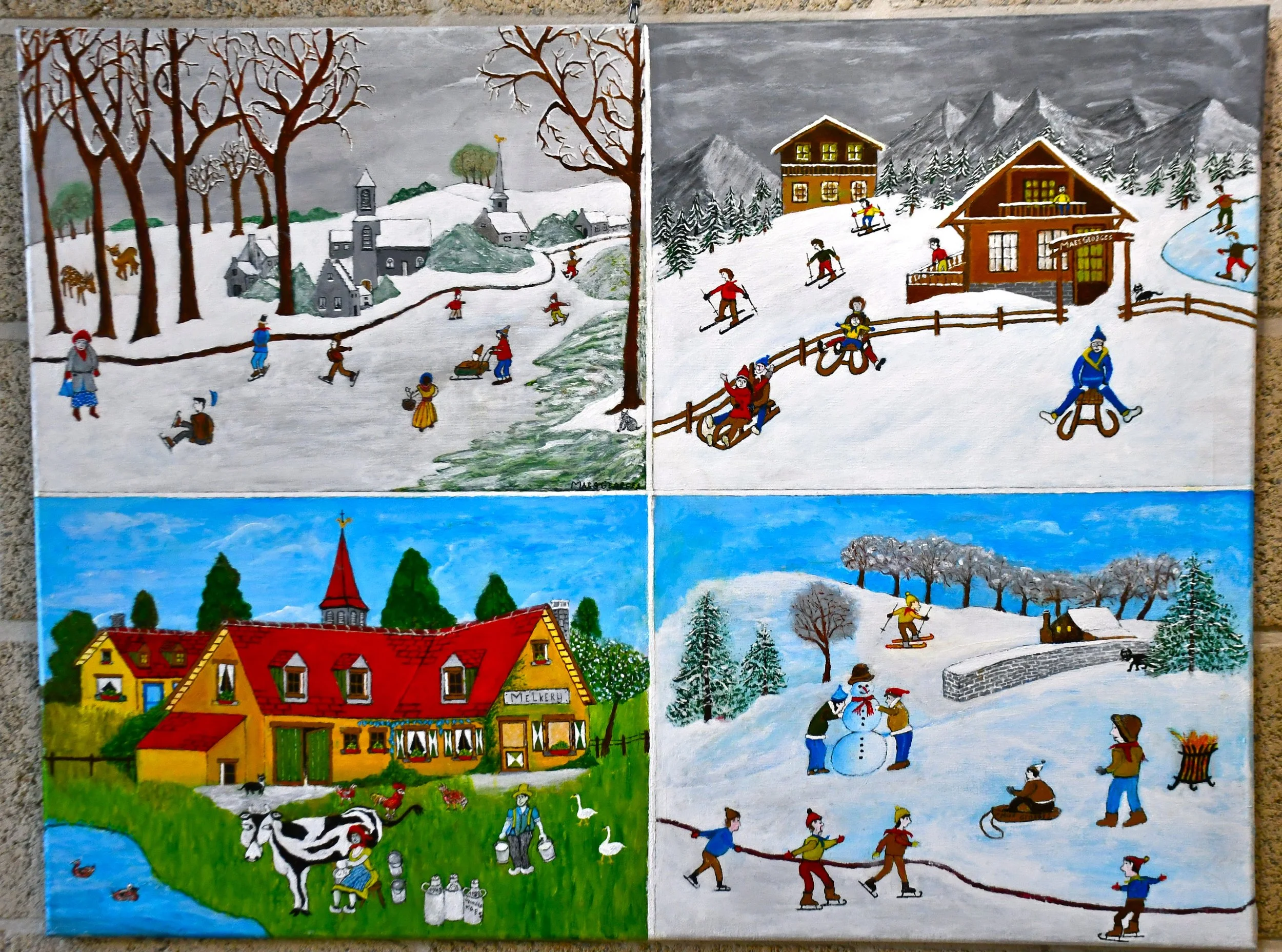 Zo genoot hij uren aan de livingtafel , dan eens met schilderijtjes , dan weer kerstballen , vogelhuisjes of spaarpotten. Zijn kunst was zo minimalistisch dat ze spontaan een glimlach op het gezicht tovert. Papa maakte fantasie : een kaasdoos van la vache qui rit , een eierdoos waar hij een nestje en een kip uitsneed , een boterke op de kersttafel waar hij de initialen G en B