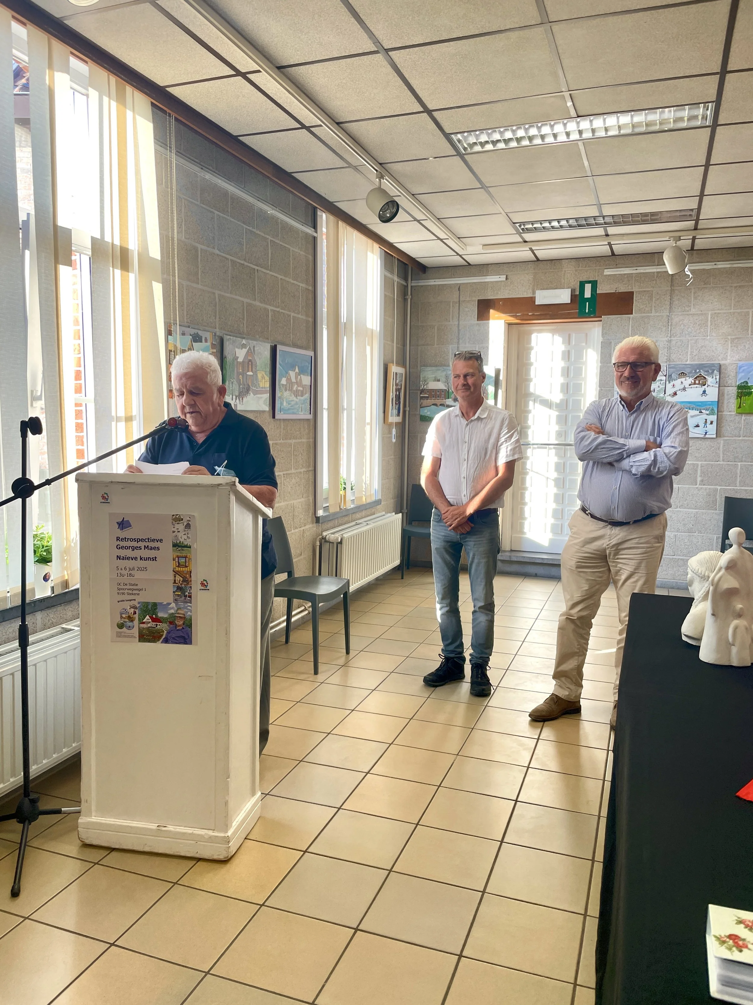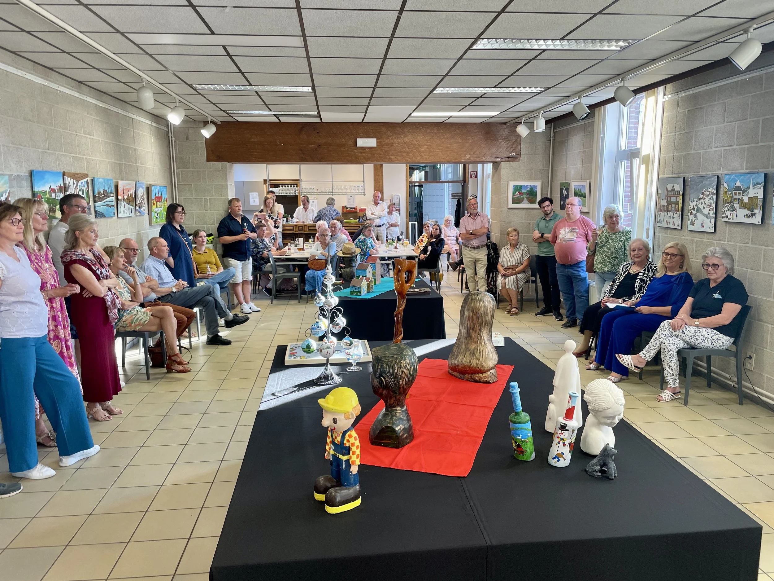 Hij kon uren gedetailleerd kijken en enthousiast vertellen over het werk van Nestor De Clerck, Paul De Hooghe, Suzy Van Bunder, Marina Mertens, Luc De Puysseleir , de gedichten van Roger Vervaet en of ik de foto’s al had gezien van Martine Goossens en de 3D creaties van Tom , de keramiek van Linda De Potter…. Hij was als een kind dat vol bewondering wandelde in het grote kunstbos. Die kunnen wa sé , zei hij dan met blinkende ogen. Hij noemde zichzelf geen kunstenaar maar een knosseleir.