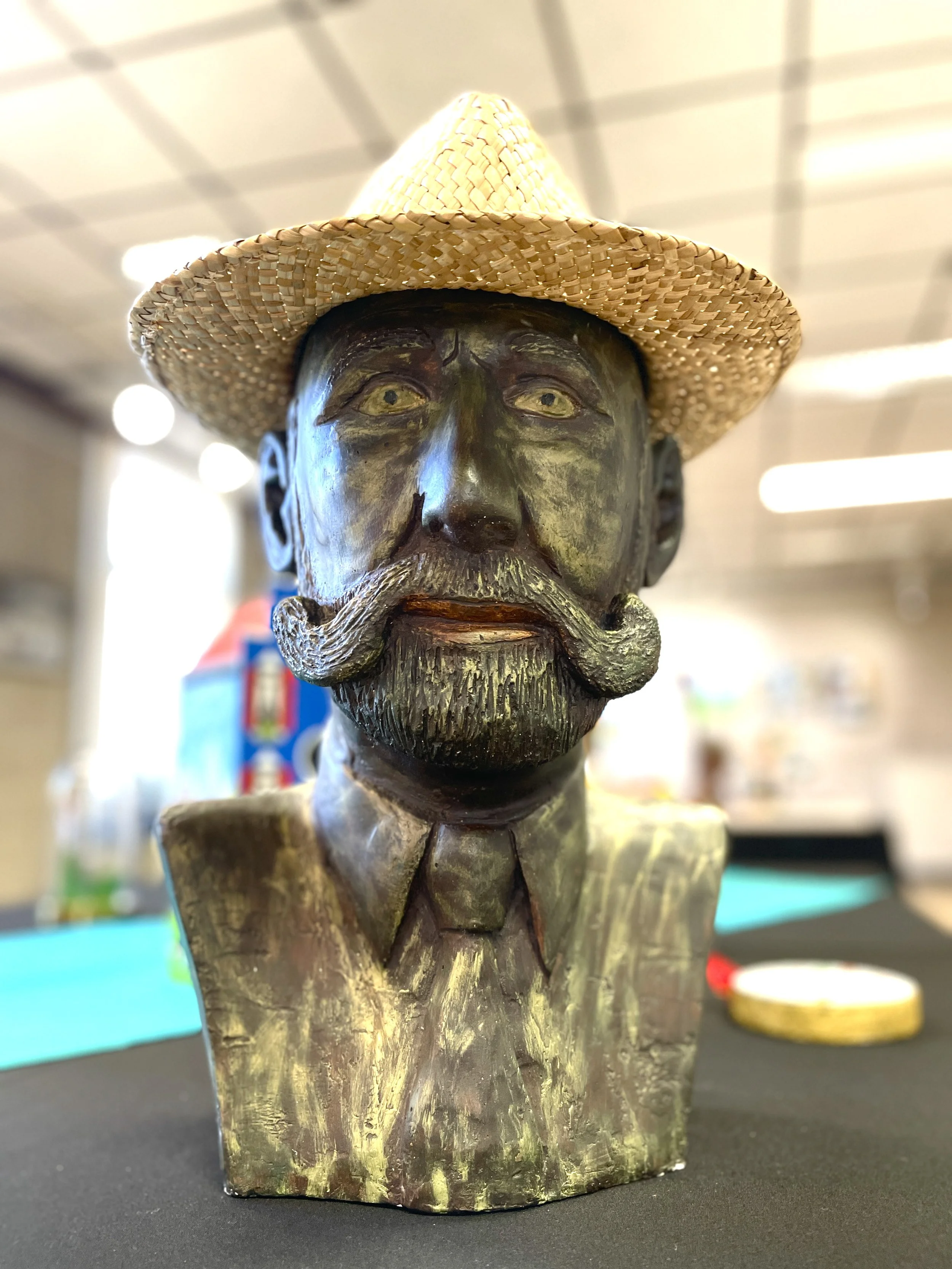 Het leven was zijn decor. Zijn verbeelding oneindig. Mijn eerste herinneringen vullen zich met kleur, de geur van hout, want hij was altijd bezig met een “creatie”. Met urenlange precisie en geduld sneed hij de schubben in de houten vis of kerfde hij de smalle slang rond de asbakboom. Ik hoef mijn ogen maar te sluiten en ik ruik de vernis , het houtschaafsel, de lijm.